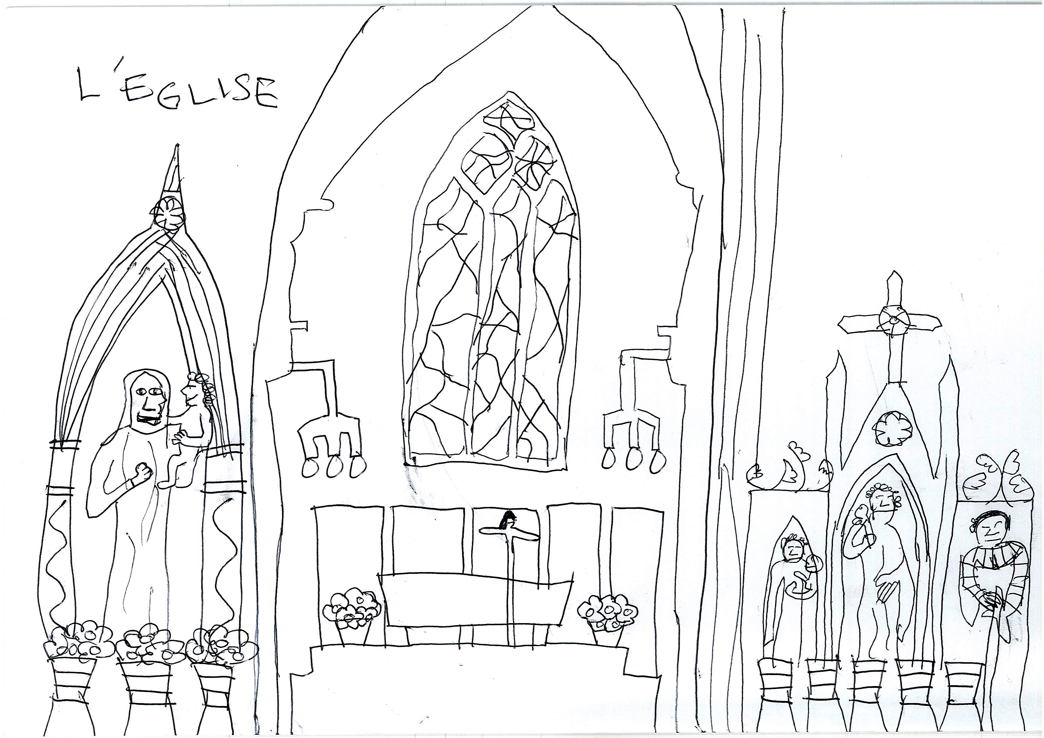 Le lieu où se réunissent les fidèles s'appelle l'Eglise (Alice). Ce lieu de culte est vraiment très ancien. Ce lieu s'appelle Notre-Dame des Vertus (Sara). Dans Notre-Dame des Vertus, il y a beaucoup de vitraux avec plein de couleurs. Il y a le confessionnal qui est un endroit fermé où le prêtre entend les confessions (Raïma). La sacristie est là où le curé s'habille. Et là où sont conservés les objets du culte (Raïma). Les fonts baptismaux servent à baptiser les nouveaux nés. Le choeur est là où on trouve l'autel et le pupitre.